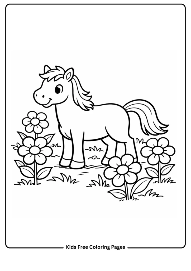 Our fun coloring sheets feature friendly cartoon horses in simple, joyful scenes—perfect for quiet time at home, classroom activities, or rainy-day fun. Each page supports educational coloring activities by introducing basic concepts like animal families, nature, counting, colors, and emotions in a playful way. Download, print, and watch your child’s creativity bloom with these creative color ideas for children.